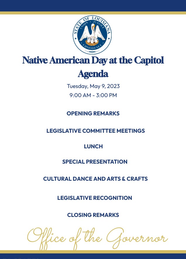 Native American Day at the Capitol, 5/9/23 The Natchitoches Tribe sent a delegation to the Native American Day at the Capitol, May 9 2023. Share this: Click to share on X (Opens in new window) X Click to share on Facebook (Opens in new window) Facebook Like Loading... Related Comments are closed.