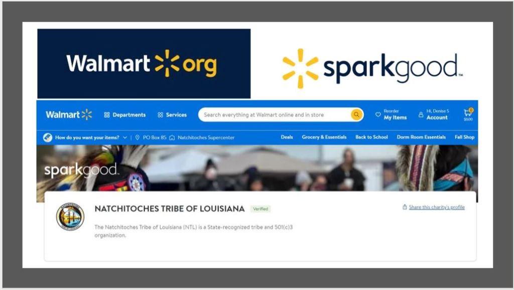 The Natchitoches Tribe of Louisiana (NTL) is a verified charity with Walmart’s new SparkGood program.