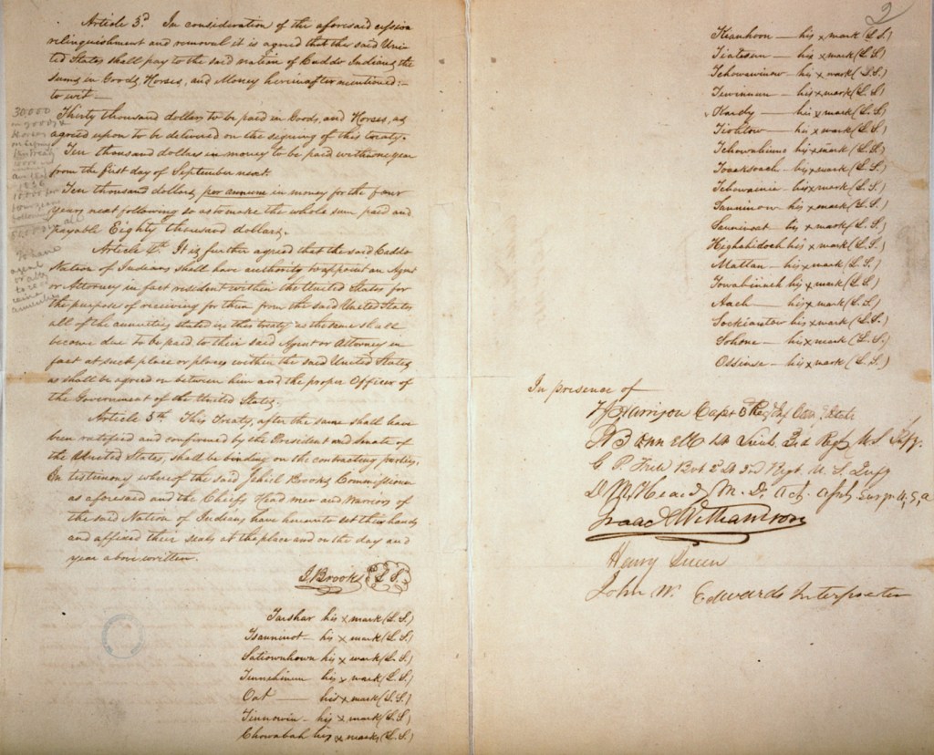 In 1803 the French Government sold their claim on the Louisiana Territory to the United States of America. In 1830 President Andrew Jackson passed the Indian Removal Act, the US Army then started removing the remaining Tribes that were east of the Mississippi River to the west side it. In 1835 the Kadohadaho Nation was forced to sign a treaty, by threat of war, with the USA Government and forced to leave Louisiana, they thought they were signing away their lands east of the Red River but were told after they signed that they had to leave the USA. That left them only one place to go, the Country of Texas. The Caddos moved to different places at different times. The first to leave looked for new homes in Texas. The last to leave followed Red River to Washita River in Indian Territory (now Oklahoma) without entering Texas. All were virtually homeless for the next twenty years.